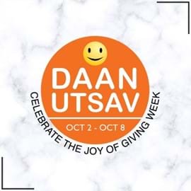 Daan Utsav 2020 formally known as "The Joy of Giving Week" from October 2 to 8 every year, where millions of Indians come forward to spread smiles around them. 2020 is the 12th year of the festival. So let us all get-together and perform acts of kindness by donating Books, clothes, notebooks, stationery, Sanitary Pads, Dry Ration and Monetory Support...